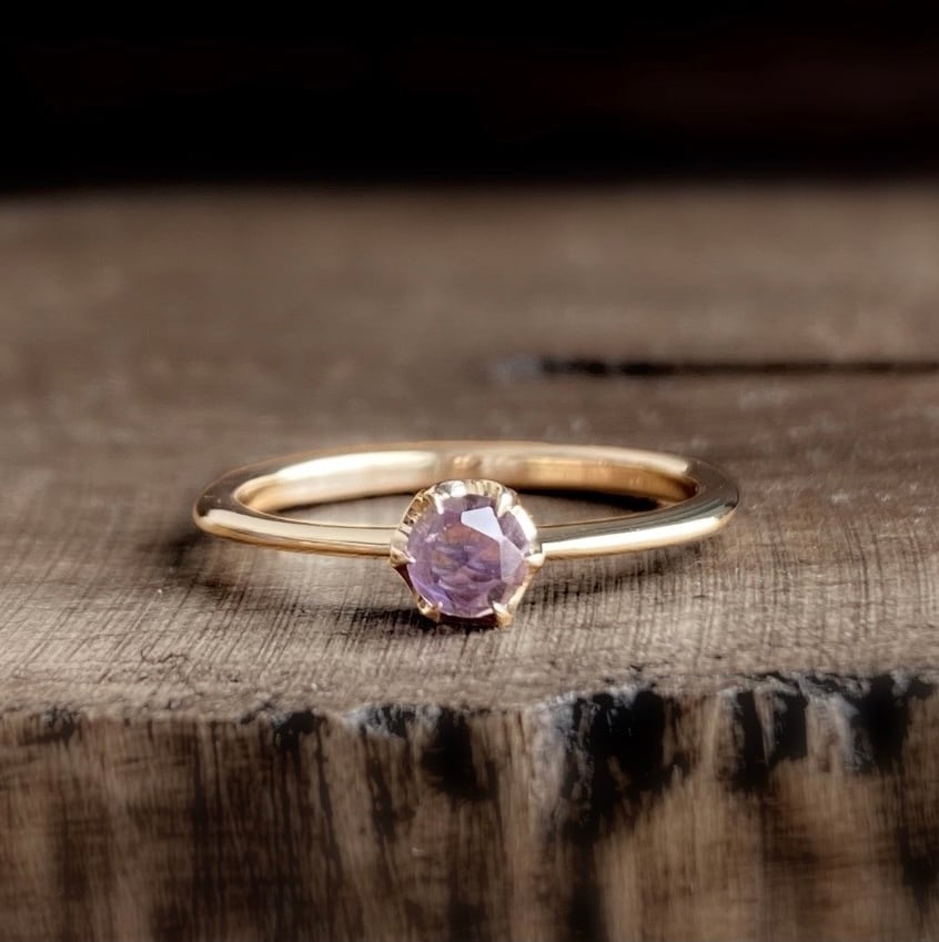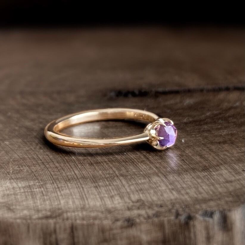 潤うように柔らかく光る、ローズカットが施されたアメシスト。